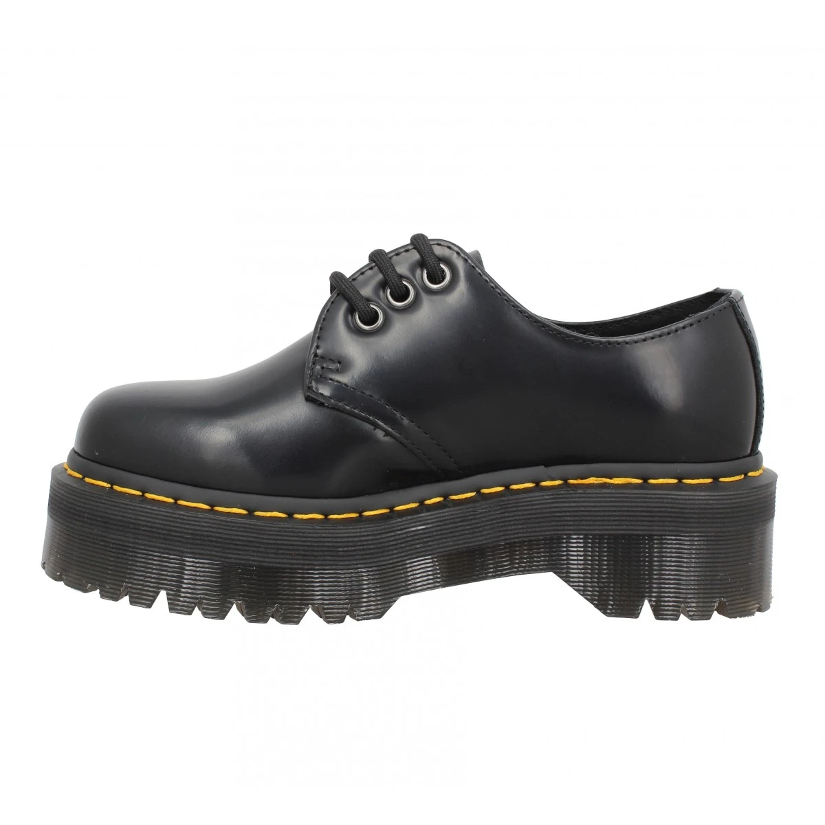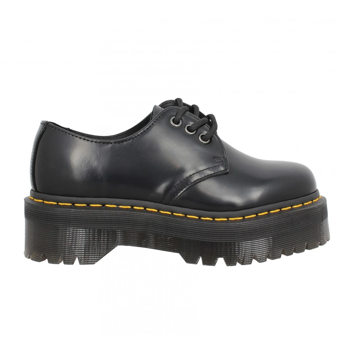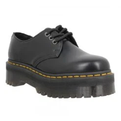 Pour femme, très jolie paire de compensées Dr Martens, proposée du 35 au 41. DR MARTENS chausse toute la famille : homme, femme, enfants ont adopté les gammes de la marque. De toutes les couleurs mises à votre disposition, vous avez préféré ces chaussures à lacets en noir, une couleur classe et distinguée qui s’entretient aisément. Le noir va parfaitement à tous les styles de chaussures, quelle que soit la saison, des nus-pieds aux baskets. Nous vous suggérons de commander votre pointure habituelle. Ces chaussures ont une semelle en gomme, donnant une démarche assurée. Ensuite, une tige en cuir, pour une tenue optimale du pied. Finalement, une doublure de cuir qui complète ces chaussures à lacets. À vous l’altitude, ces chaussures à lacets en cuir vous offrent 5, 5 cm de talon ! Fanny Chaussures, pour faire vos achats de chaussures Dr Martens, c’est la garantie de bénéficier des nombreux atouts de notre enseigne, citons par exemple la livraison gratuite dès que vous commandez pour 30€ et plus, aucun frais* sur le retour de votre commande et la garantie d’un paiement sécurisé. Bénéficiez du règlement en plusieurs fois* et des remises fidélité (*sous réserve de conditions). Notre service conseil se fait un plaisir d’être vraiment attentif, faites-en vite l’expérience.