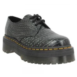 Sans hésiter, offrez-vous cette paire de chaussures compensées Dr Martens pour femme, disponible du 35 au 41. Dr Martens équipe tout le monde : homme, femme, enfants trouvent leur bonheur parmi les gammes de la marque. Votre choix de couleur ? ces chaussures compensées en gris, aussi appelée gunmetal, un coloris indispensable, simple à assortir. Entre le noir et le blanc, le gris symbolise la sobriété, un soupçon de chic en plus. Nous vous conseillons de commander votre pointure habituelle. Comment sont conçues ces chaussures ? fournissant une adhérence irréprochable, ces chaussures compensées ont une semelle en gomme, deuxiÚmement, une doublure de cuir qui habille ces souliers.