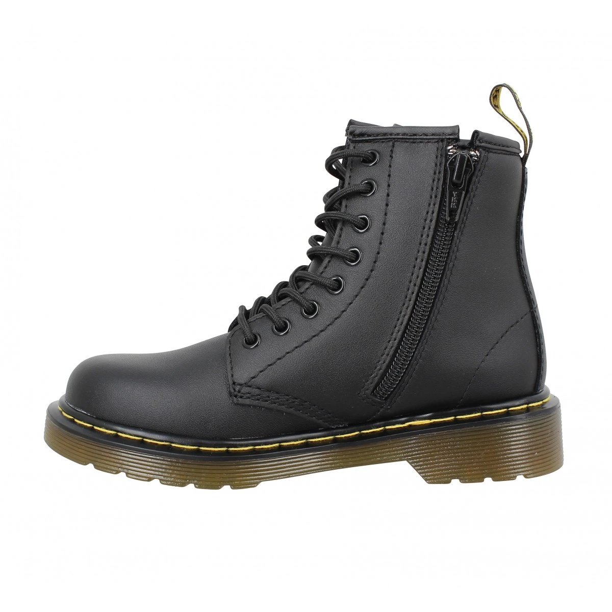 Vous avez flashé sur cette paire de bottes Dr martens en noir pour enfant ? Excellente sélection ! Nous vous conseillons de commander la pointure habituelle de votre enfant. Quelques spécifications : d’abord, ces chaussures se composent d’une tige en cuir, parfaite pour une tenue optimale du pied. Puis, une doublure de textile complète ces souliers, terminons avec une semelle en gomme fournissant une accroche rassurante. Des matériaux de qualité, le travail de professionnels rien que pour les pieds de vos enfants ! Pour chausser les adultes comme les plus jeunes, DR MARTENS, c’est le choix idéal, en effet, les parents comme les enfants peuvent trouver chaussure à leur pied dans les gammes de la marque. Votre préférence de couleur ? ces bottes en noir, coloris classe et distingué. Intemporel, le noir convient à tous les styles de chaussures, été comme hiver, des espadrilles aux bottes. De plus, c’est une teinte qui s’entretient aisément. Aussi offertes en argent, marron, noir, rouge. En choisissant Fanny Chaussures pour faire vos emplettes de chaussures Dr Martens, vous vous offrez les nombreux à-côtés de notre magasin en ligne, citons par exemple la livraison gratuite dès que vous commandez pour 30€ et plus, aucun frais* si vous devez échanger ou retourner votre commande mais aussi un paiement hautement sécurisé. Libre à vous de profiter du paiement en plusieurs fois* et des remises fidélité (*sous réserve de conditions). Notre personnel a la réputation d’être réellement à l’écoute, faites-en vite l’expérience. Disponible du 26 au 35.