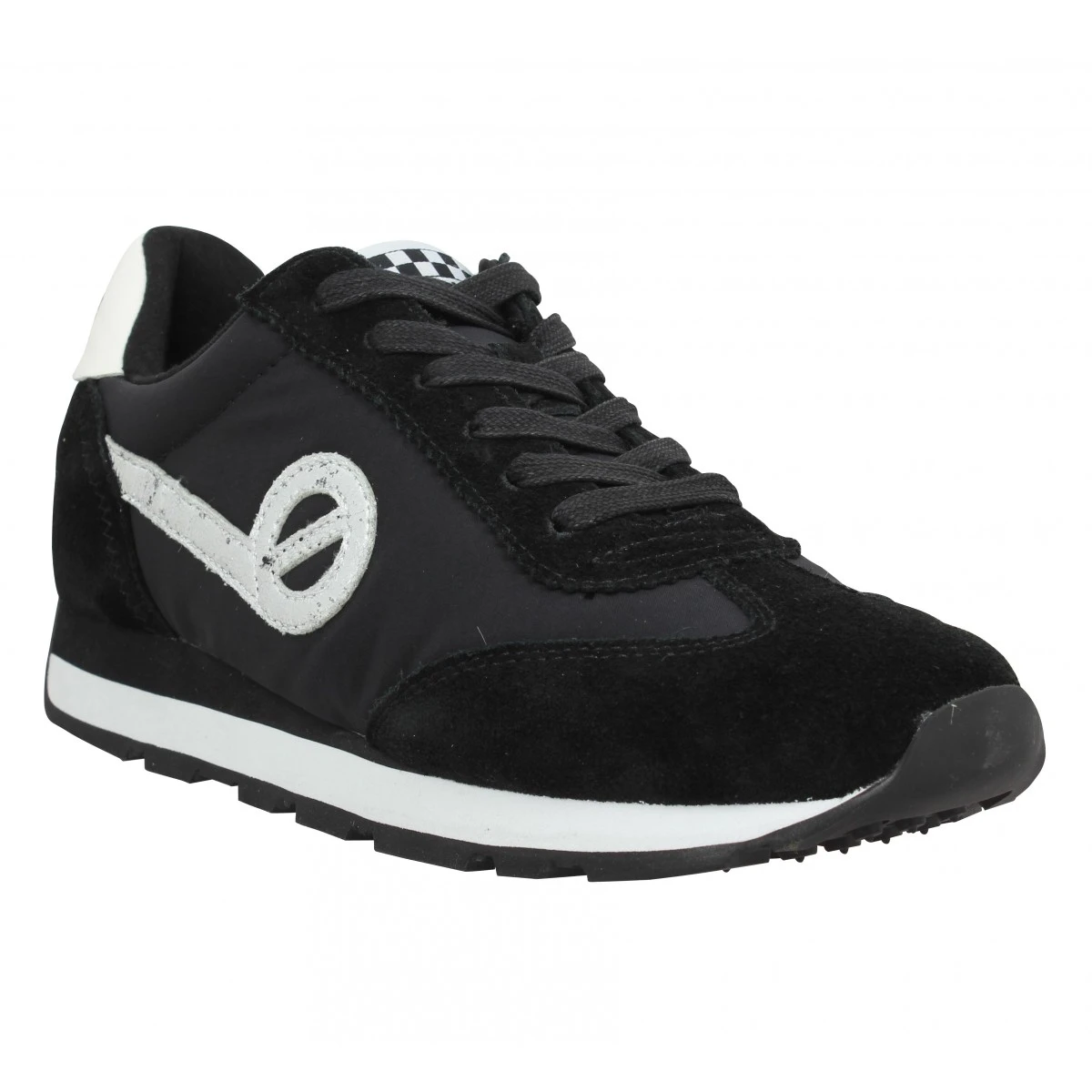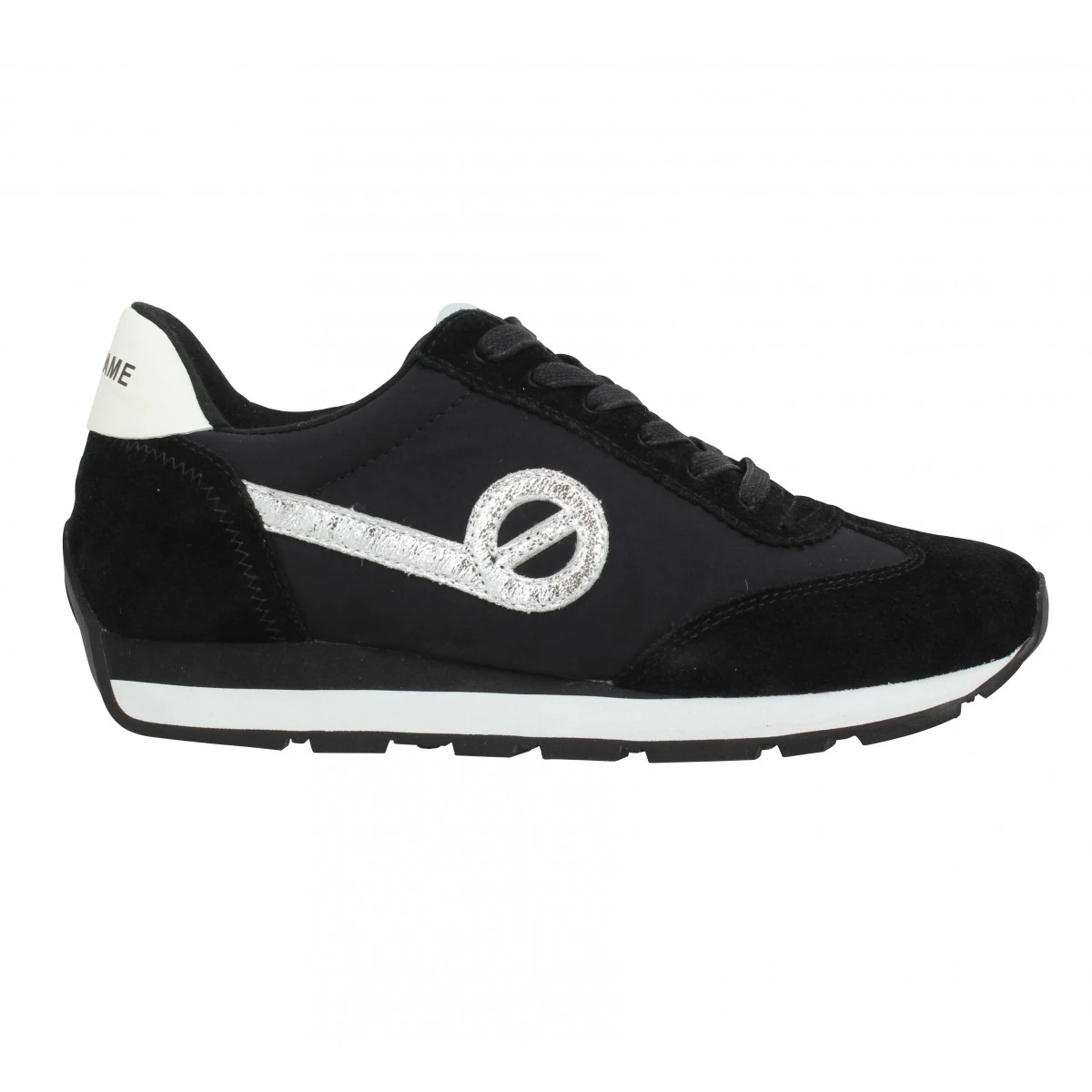 À saisir, paire de baskets No Name pour femme, disponible du 35 au 41. No Name se consacre aux dames prioritairement et elles en sont dingues ! De toutes les couleurs mises à votre disposition, vous avez craqué pour ces baskets en noir, coloris chic et élégant. Classique, le noir convient à tous les types de chaussures, quelle que soit la saison, des sandales aux bottines. C’est aussi une nuance qui s’entretient aisément. Nous vous suggérons de commander votre pointure habituelle. Ces chaussures sont dotées d’une semelle en gomme, donnant une accroche rassurante. Deuxièmement, une tige en cuir et textile, pour une tenue optimale du pied. Pour finir, une doublure de textile qui complète ces baskets.