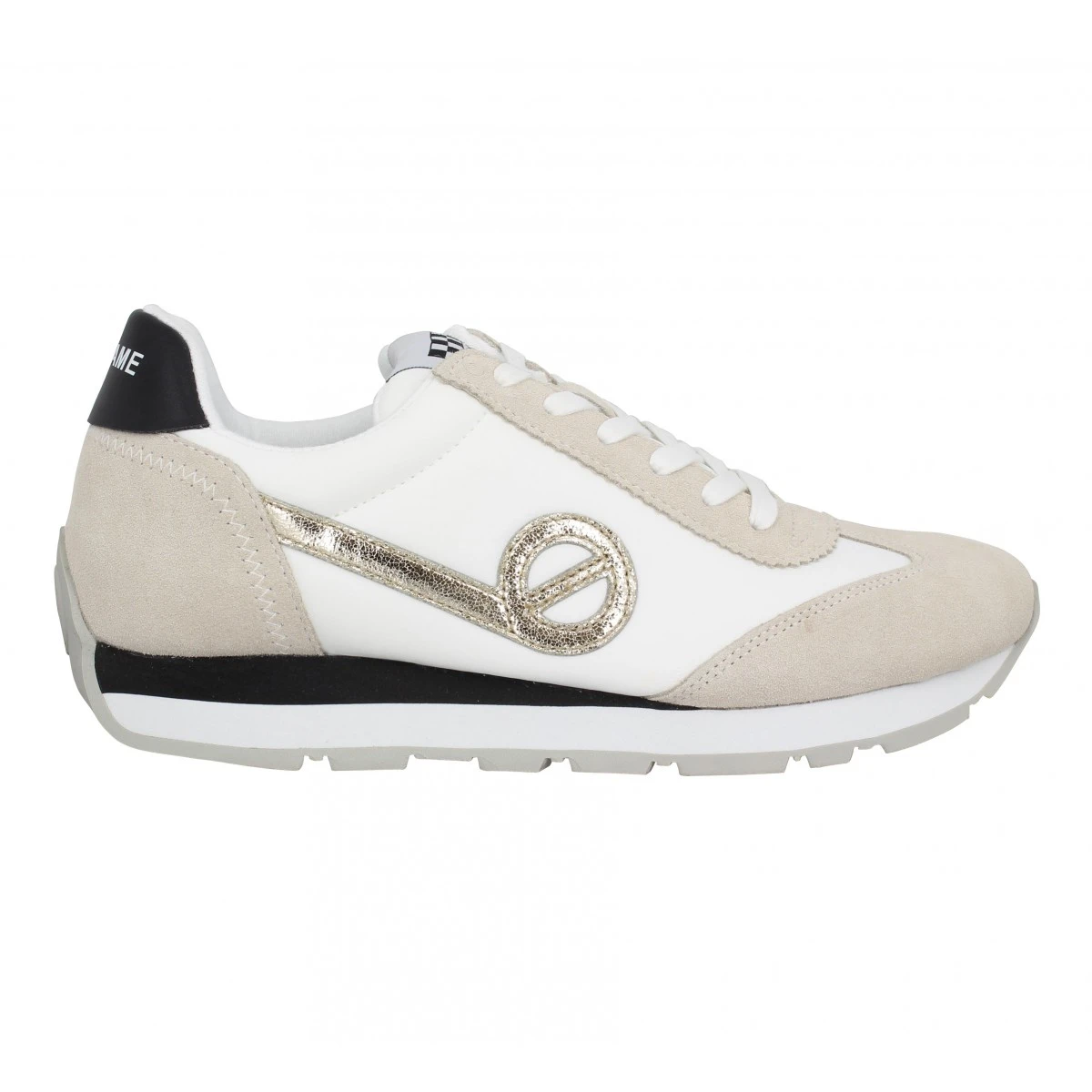 Pour femme, trĂšs jolie paire de baskets No Name, proposĂ©e du 35 au 41. No Name, l’enseigne habille principalement ces dames et elles le recommandent ! Votre choix de couleur ? ces baskets en blanc, couleur primaire dont on ne peut se passer, particuliĂšrement durant la saison chaude. Il est conseillĂ© de commander votre pointure habituelle. Ces chaussures ont une semelle en gomme, donnant une adhĂ©rence assurĂ©e. DeuxiĂšmement, une tige en cuir et textile, pour une tenue confortable du pied. Finalement, une doublure de textile qui complĂšte ces baskets. Autre information, ces chaussures en cuir et textile ont un talon de 3 cm. Ăgalement offerte en noir, cette paire de baskets suivra l’humeur du moment.