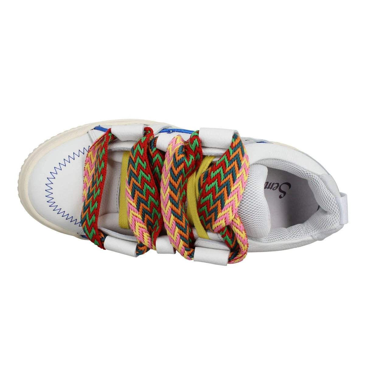 Magnifique paire de baskets Inna, du label Semerdjian au choix du 35 au 41. Pour les femmes aussi bien que pour vous Messieurs, Semerdjian distribue des chaussures plébiscitées par tous ! De toutes les couleurs offertes, vous avez craqué pour ces baskets en blanc, aussi appelée white multi, un ton classique indétronable. Nous vous suggérons de commander votre pointure habituelle.