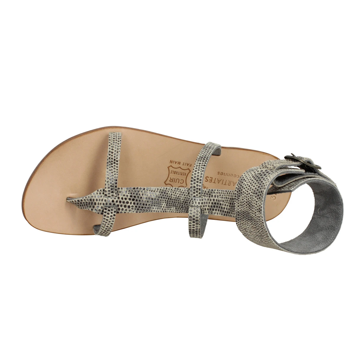 Superbe paire de nu-pieds Olya de la marque Spartiates Phoceennes au choix du 35 au 41. Spartiates Phoceennes : uniquement au féminin ! Vous optez pour des nu-pieds en beige, une teinte entre le marron clair et le blanc, d’inspiration automnale qui se porte pourtant en tout temps. Ces nu-pieds sont à commander à votre pointure habituelle.